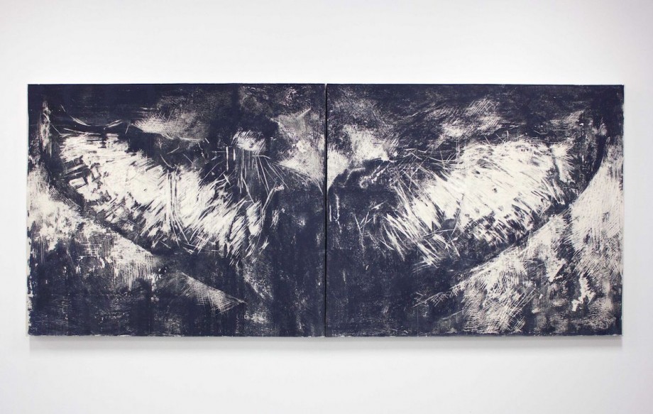 さんが、海面から現れたクジラの尾びれを描いた作品シリーズ「Whale Fluke」です。クジラが潜水時に見せる行動 フルークの際に海面から現れる尾びれを、ガッシュや粘土を使い、躍動的に描いています。