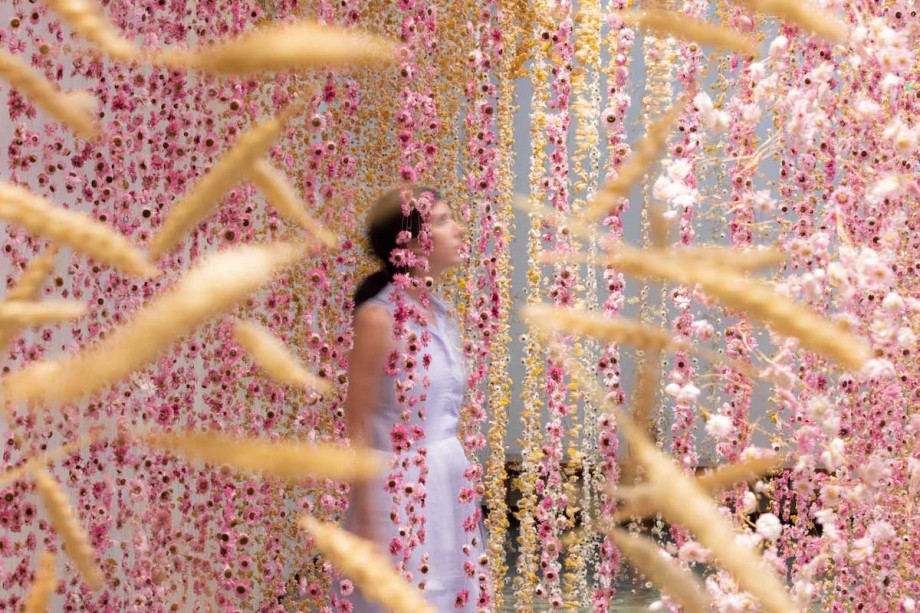 無数のドライフラワーが天井から吊り下がるインスタレーション / Rebecca Louise Law