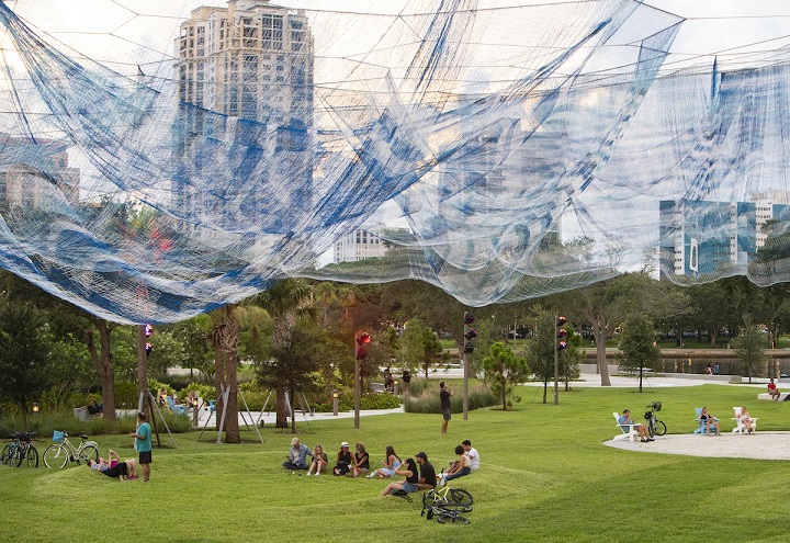 米フロリダ州の公園の空中に架け渡した巨大なネットのインスタレーション / Janet Echelman