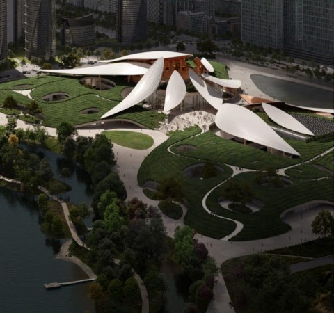 Cultural Center in China Has Roof Inspired by the Shape of Bamboo Leaves
