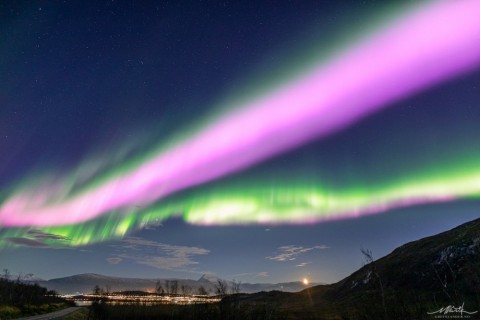 ノルウェーの夜空に現れた幻想的なピンク色のオーロラ / Greenlander