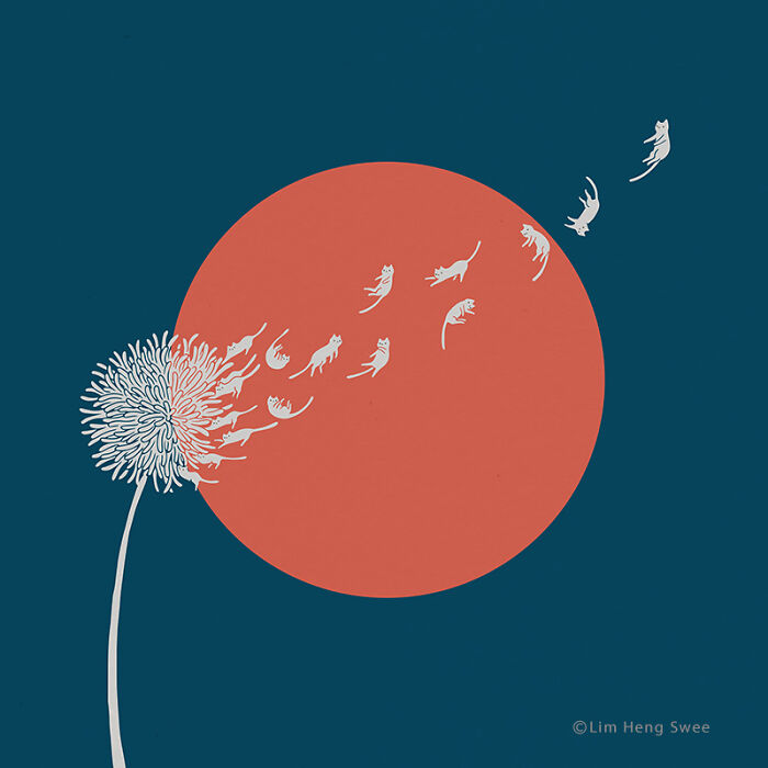 猫と植物を組み合わせた遊び心あふれるイラスト / Lim Heng Swee