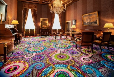 アムステルダム王宮の床に展示した宝石のようなカーペットのインスタレーション / Suzan Drummen