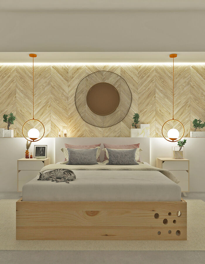 が、猫との暮らしを考えてデザインしたベッドです。木で組んだ下段のフレームを迷路状にし、穴を開けて、猫の隠れ場所や遊び場になるようにデザインしています。