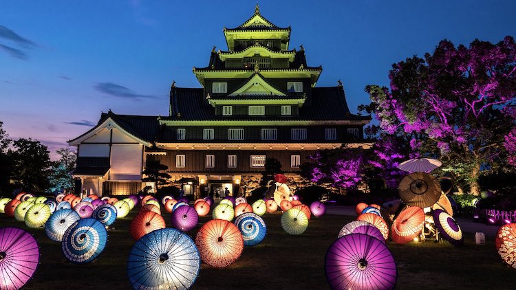 Illuminated Umbrellas Highlight the Enchanting Beauty of Japan’s Okayama Castle
