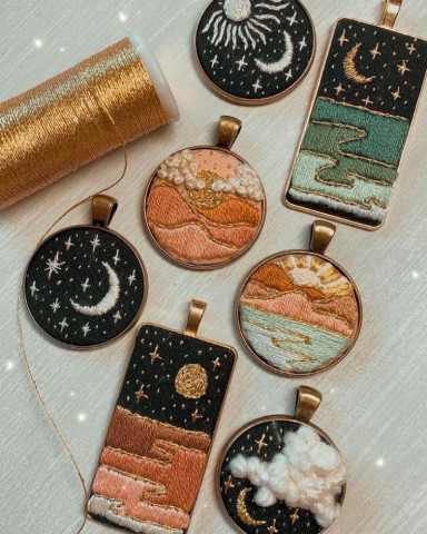 Magical Embroidered Pendants Inspired by the ‘70s “Retro Girl” Era