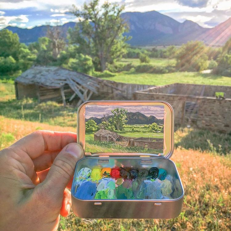 Pocket-Sized Mint Tins Open to Reveal Miniature Oil Paintings of Bucolic Landscapes