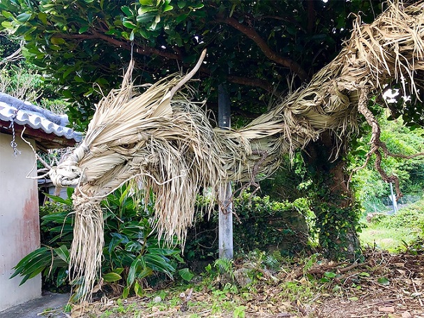 沖縄・うるまの芸術祭に展示されたクバの藁の龍 / Ayako