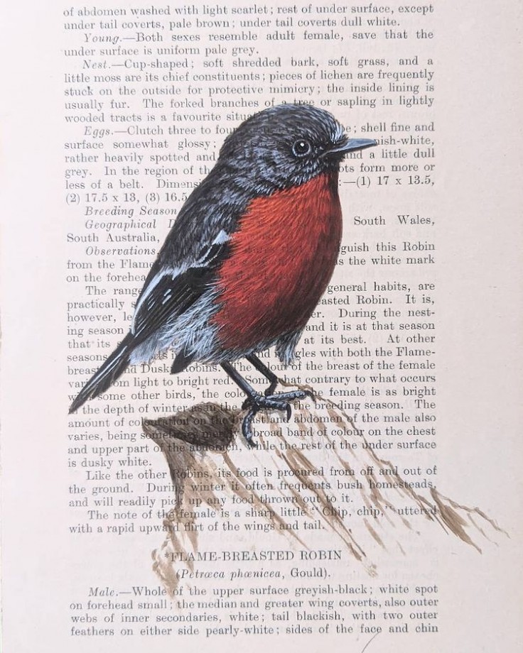Artist Adds Exquisite Bird Paintings To Vintage Book Pages That Describe Them
