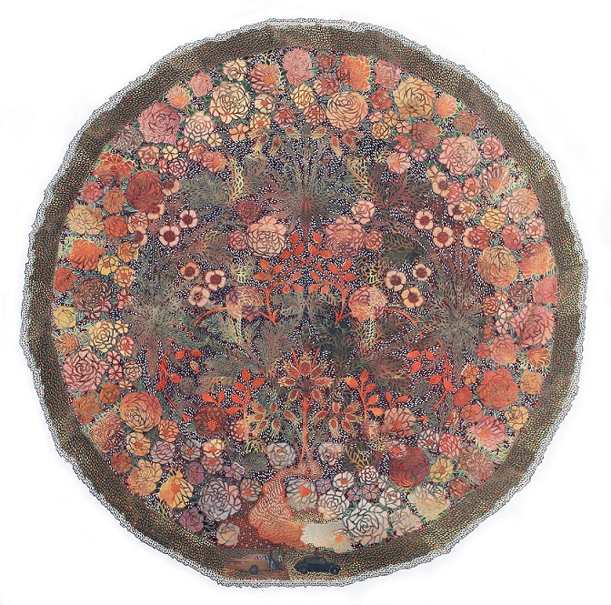 さんが新聞紙を切り抜いて作るコラージュ作品です。新聞紙を緻密な作業で切り抜いて透かし彫りのように模様などを施し、それら素材を組み合わせて繊細なコラージュアートを作っています。