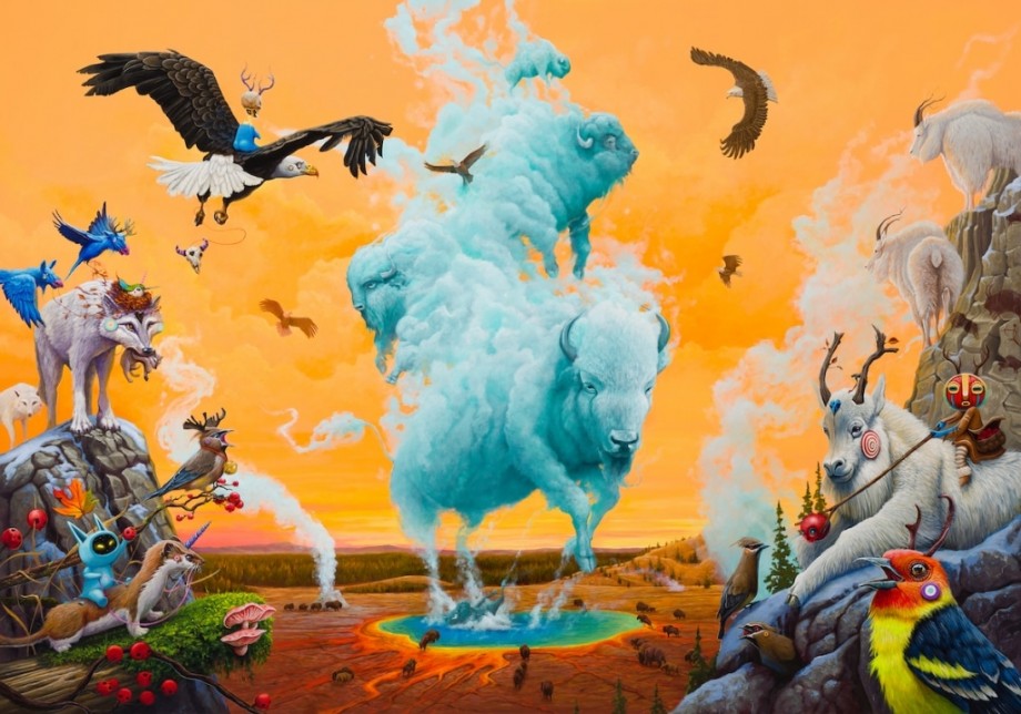 自然の中で多様な生き物たちが共生する風景を描いた絵画 / Dulk