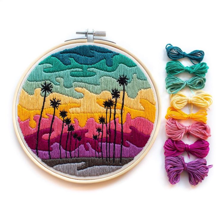 Embroidery Artist Creates Rainbow Landscapes By Stitching Together Rows of Color