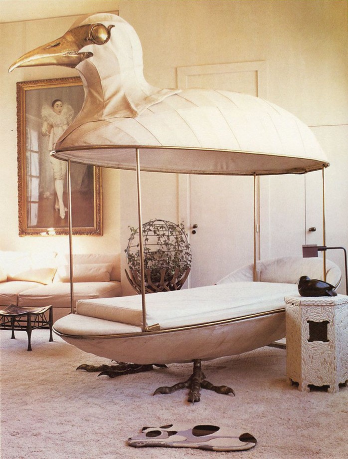 室内プールの真ん中に設置したベッドや、鳥の形をしたベッドなど、独創的なつくりをした寝室の数々です。