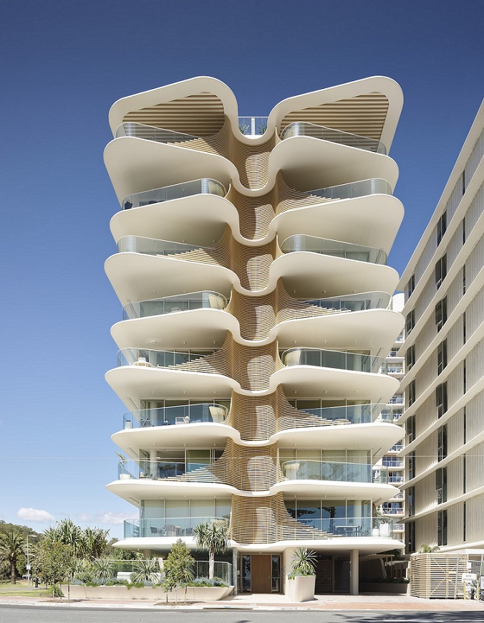 オーストラリア・ゴールドコースト近くのバーレイヘッズに建てられた高層住宅です。建築家 高田浩一 氏が率いる