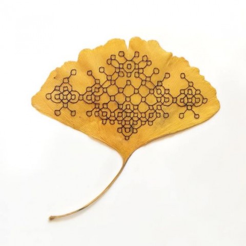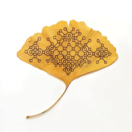 木の葉に糸で繊細な模様を描いた刺繍アート / Hillary Waters Fayle