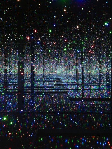 当初2020年の展示が予定されていましたが、新型コロナウイルスの影響で延期。新たな会期は2021年3月29日~2022年3月27日。草間のこれまでの最大のインスタレーションのひとつである『無限の鏡の部屋-生命の輝きに満ちた部屋』を展示。もうひとつの『Chandelier of Grief(悲しみのシャンデリア)』は、シャンデリアが回転することで無限の宇宙のような錯覚を起こすものです。 Chandelier of Grief(悲しみのシャンデリア)