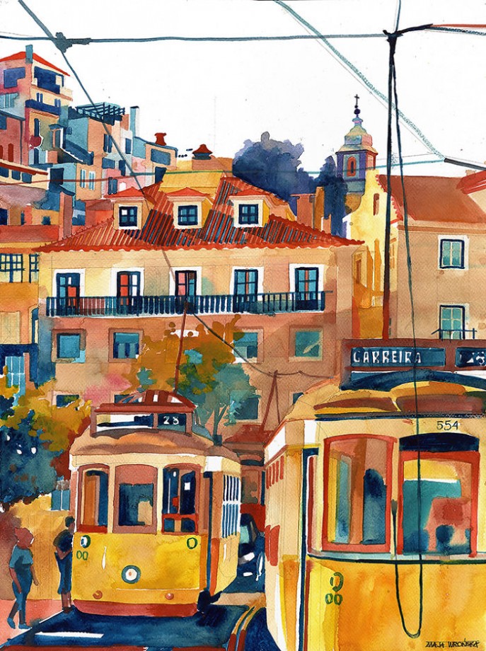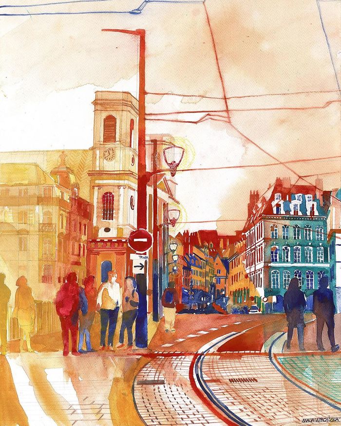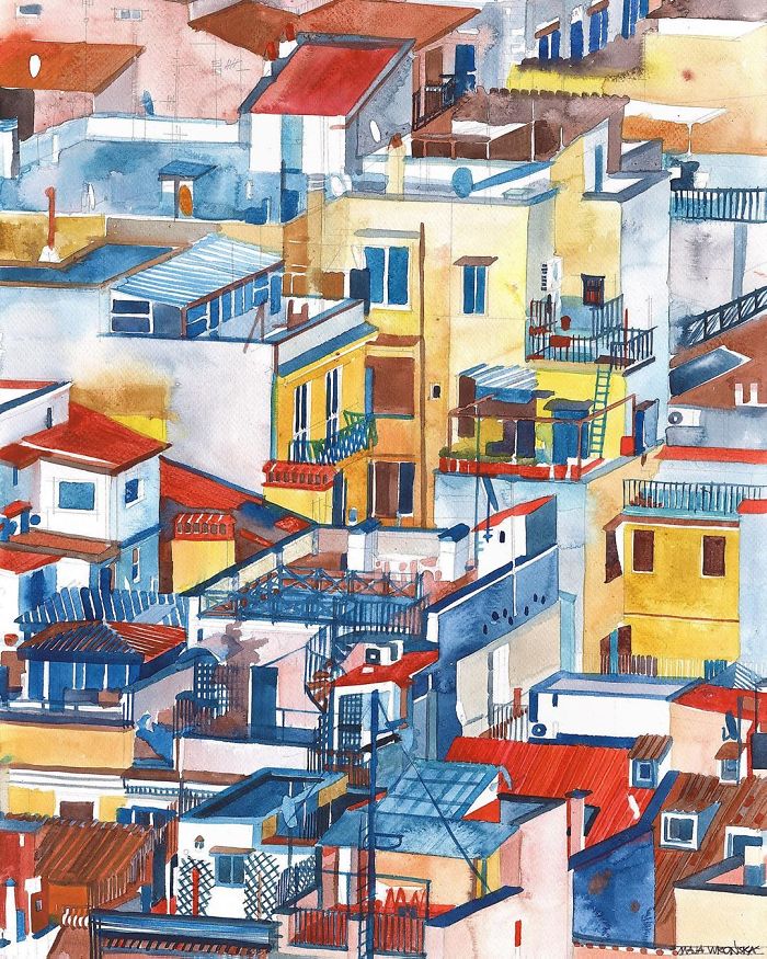南ヨーロッパのカラフルな街並みを描いた水彩画 / Maja Wronska