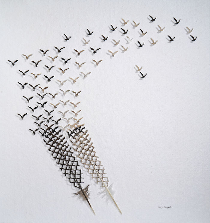 鳥の羽でつくった切り絵アート / Chris Maynard