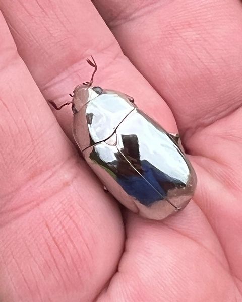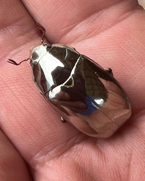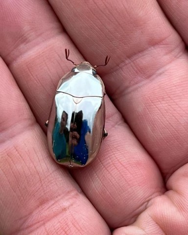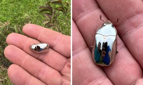 Man Finds Rare Mirror-Like Scarab Beetle While on a Stroll