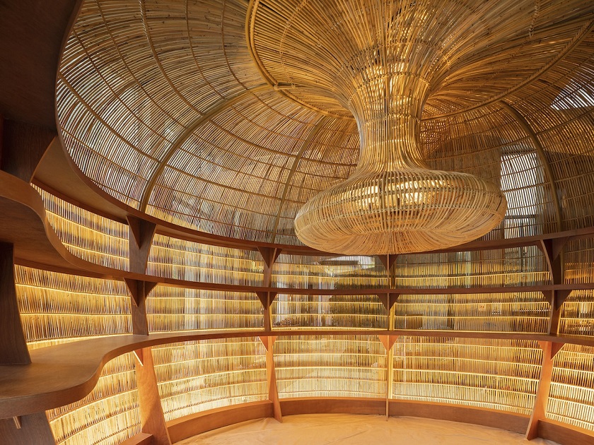 Monumental Waves of Flowing Rattan Transform an Art Gallery in Thailand