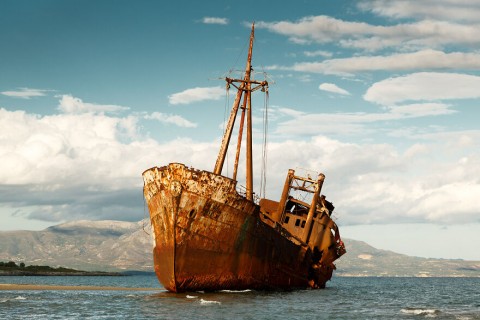 )さんがギリシャを訪れ、点在する廃墟を撮影した写真です。座礁した廃船や、使われなくなった駅や教会など、ノスタルジックやミステリアスな雰囲気を残す美しい廃墟を写真に記録しています。