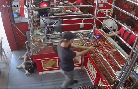 防犯訓練で強盗が来ても寝ていたタイの宝石店の番犬 / Lucky