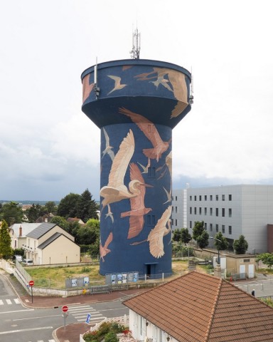フランスの町の給水塔に描かれた美しい鳥の壁画 / Taquen