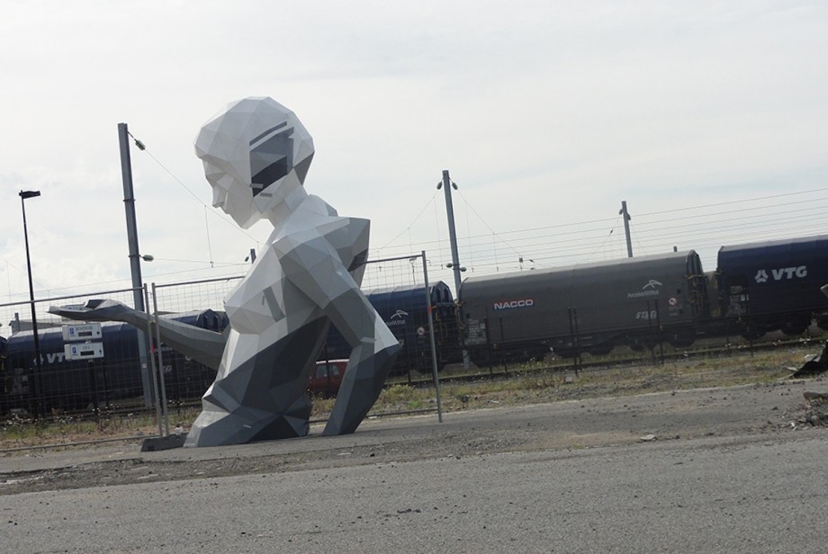 さんが制作し、フランス・ナントの鉄道ヤードに展示した幾何学状の巨大な女性の彫刻です。列車が過ぎゆく鉄道ヤードに、高さ約4メートル、多角形で構成された片腕を上げる女性の像を設置しています。