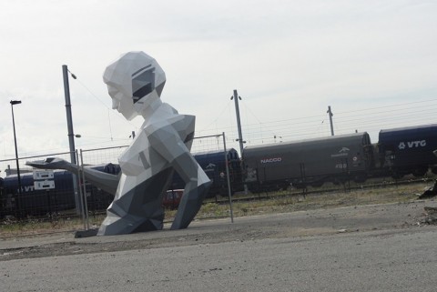 フランスの鉄道ヤードに展示された幾何学状の巨大な女性の彫刻 / David Mesguich