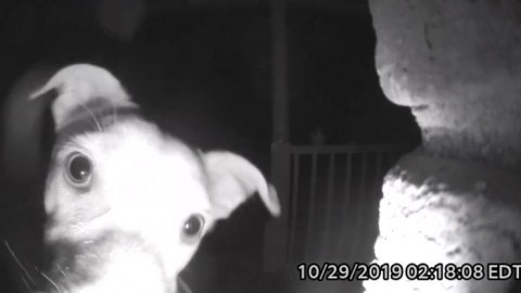 米ジョージア州マクドノウに住む Robert Fox さんの愛犬が、深夜2時に自宅の玄関チャイムを鳴らした様子をとらえた監視カメラの画像です。
