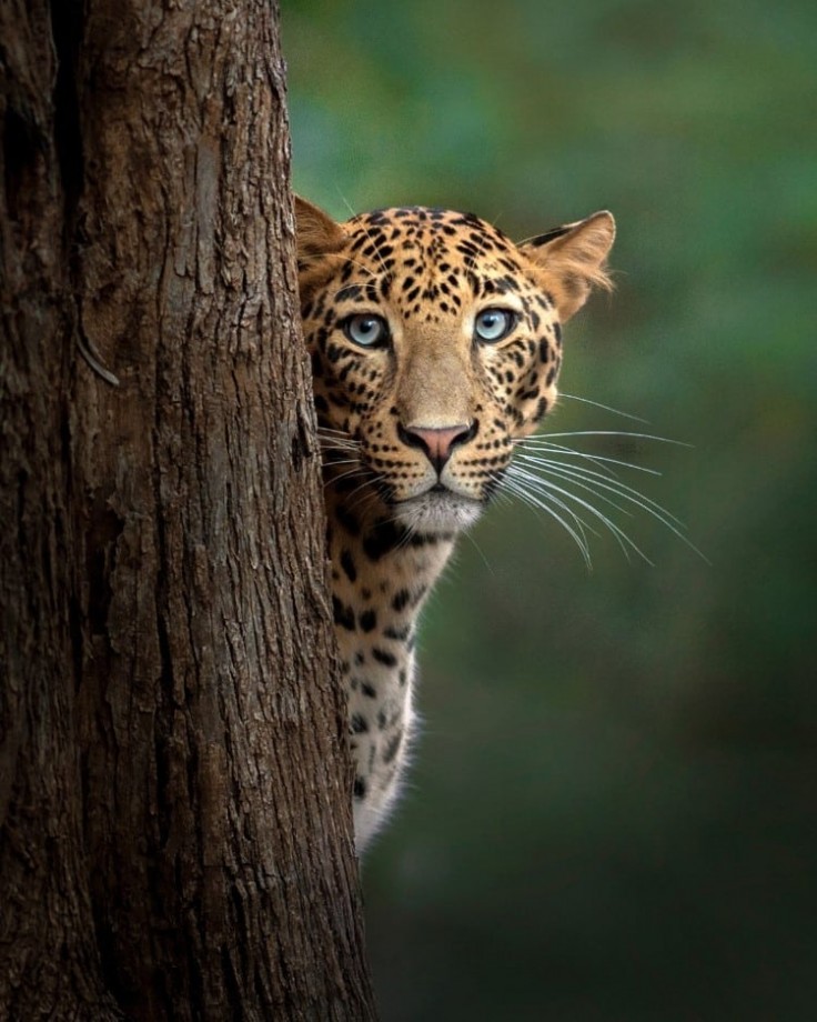 さんが、動物たちと目が合った瞬間を撮影した写真シリーズです。木陰から顔を覗かせるヒョウやサル、地面から顔を出すカメレオンなど、野生動物たちと目が合った愛らしく美しい瞬間を写真に収めています。