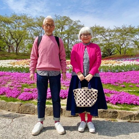 Older Japanese Couple Expresses Their Love Through Coordinating Outfits