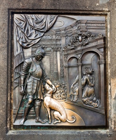 This Relief of a Saint’s Dog Shines Gold From Many Years of Pets for the “Good Boy”