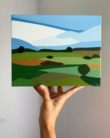 海辺や空の見える風景を単純化して描いた抽象的な油彩画 / Rachael Cassiani