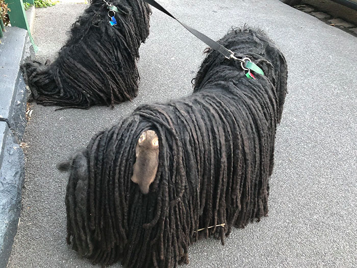 プーリー種の犬の長い縄状の毛に、いつの間にかしがみついていた可愛いポッサムの赤ちゃんです。野生生物の保護団体に連絡をとり、このポッサムは保護されました。