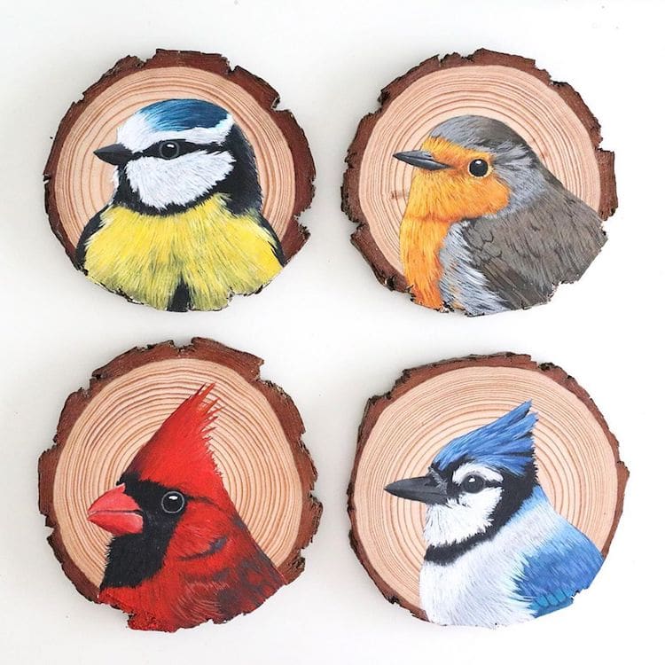 Artist Spends 100 Days Painting 100 Species of Birds on Slices of Wood