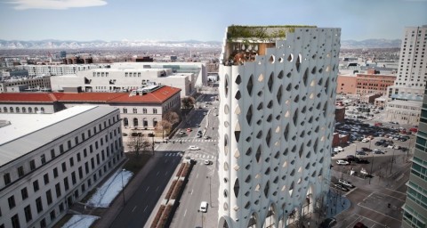 米コロラド州デンバーに建設されているアメリカ初のカーボンポジティブなホテル「Studio Populus」です。建築事務所 Studio Gang が設計。外観は、コロラド州のシンボルであるポプラの木からインスピレーションを受け、ポプラの幹の樹皮のようなデザインとしています。