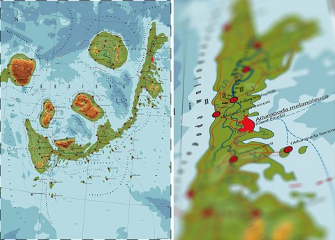 動物の形をした陸地が海に浮かぶ架空の地図 / DAU-DAW
