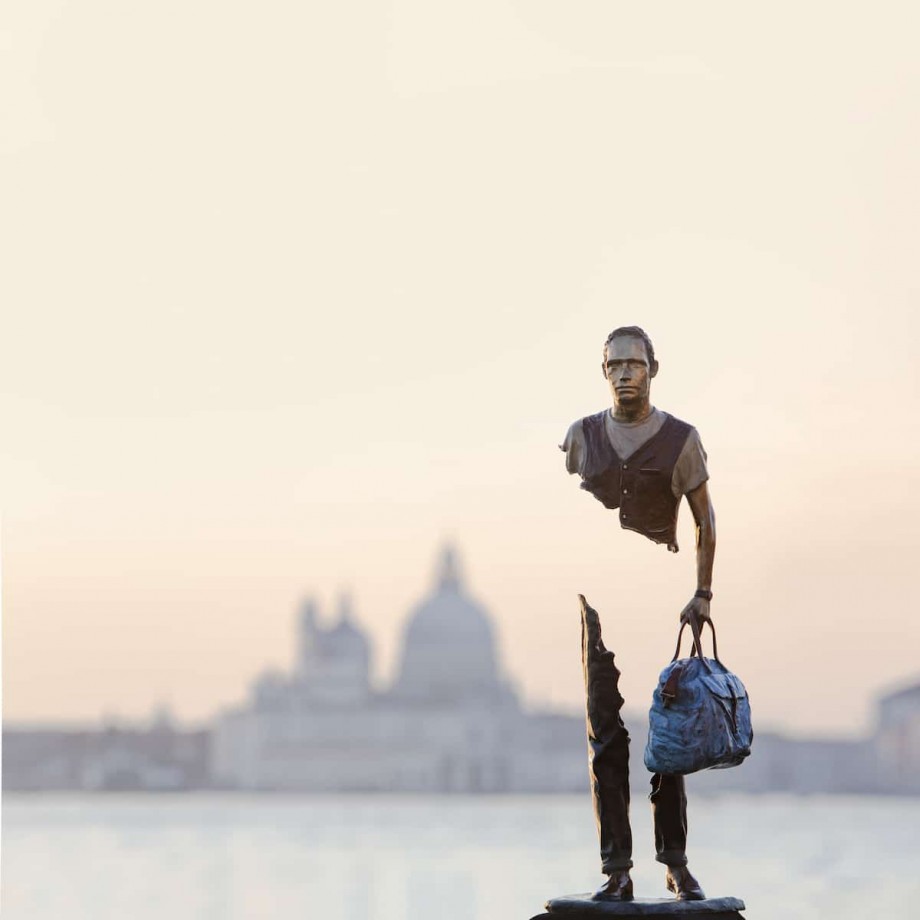 ヴェネツイアの街に展示した断片的な人物のブロンズ像 / Bruno Catalano