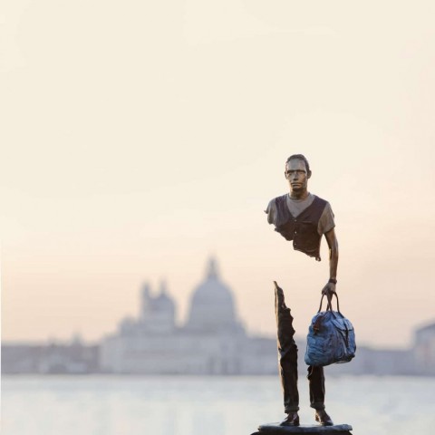 さんが、イタリア・ヴェネツイアの街の各所に展示したブロンズ像です。かばんを持って旅をするさまざまな人物を、部分部分が無い断片的な姿として表現しています。