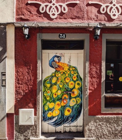 さんが、ポルトガル領のマデイラ島を訪れ、The Painted Doors Project の一環で、各家のドアに描かれた絵柄を撮影した写真です。首都フンシャルの各家のドアに描かれた個性あふれる絵が、町をアートギャラリーのように彩っています。