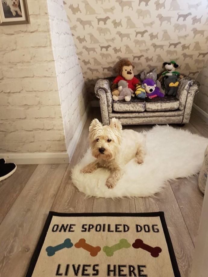 Michael McGowan さんが自宅の階段下につくった愛犬 Molly の部屋です。階段下の空いているスペースに内装を施し、小さな家具などを備え付けて素敵な部屋になりました。