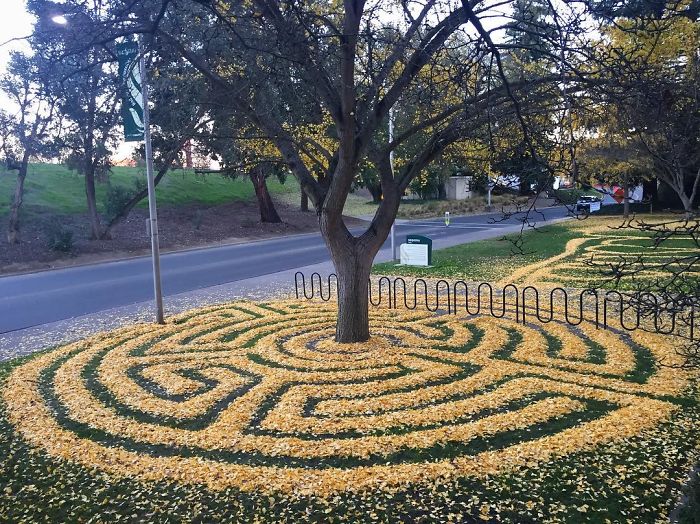 Every Year This University Employee Rakes Leaves Into Stunning Works Of Art And Leaves It For Students To Find