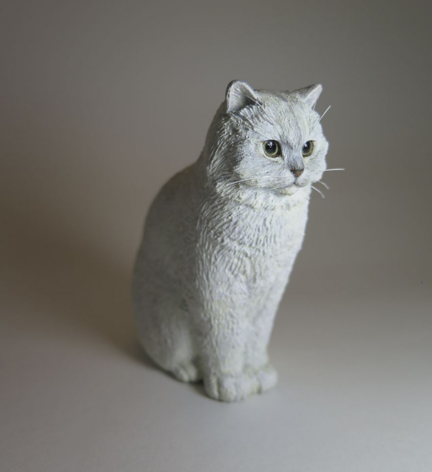 樹脂粘土でつくったものに色付けした可愛い猫の塑像です。