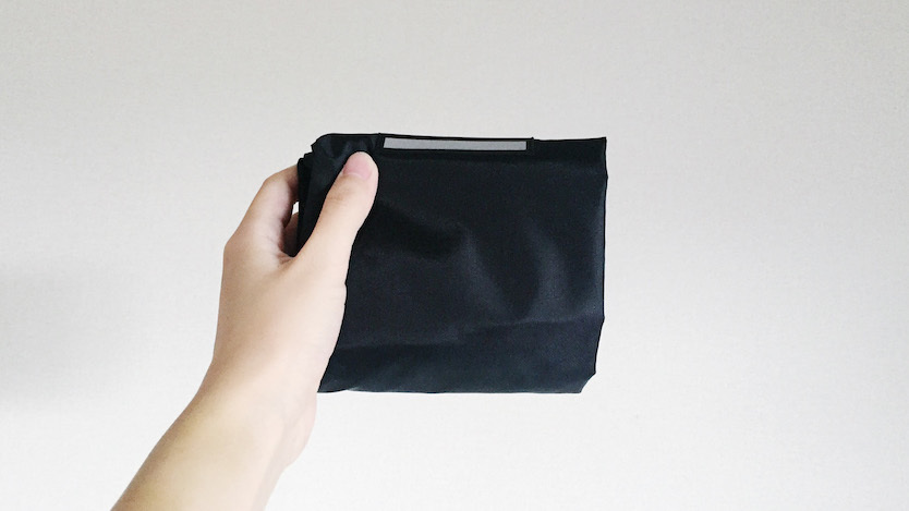 」です。ポリエステル100%の薄くて軽い素材のため、折りたたむと片手に収まるくらいコンパクトになります。