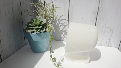 横向きにすると、持ち手のところで自立。斜めの口から水が流れ出て清潔に。また、フックに掛けても、内部に水が溜まらず衛生的です。