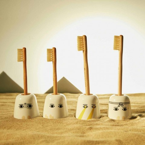 謎多きエジプトの神・メジェドさまの表情をプリントした歯ブラシスタンド。