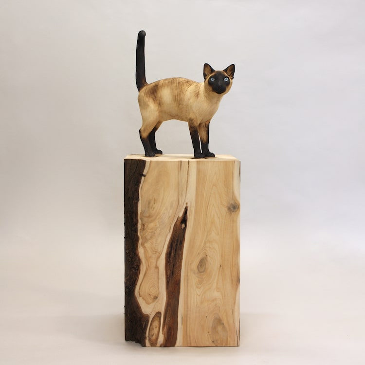 Artist Carves Incredibly Lifelike Pet Sculptures from Massive Tree Trunks