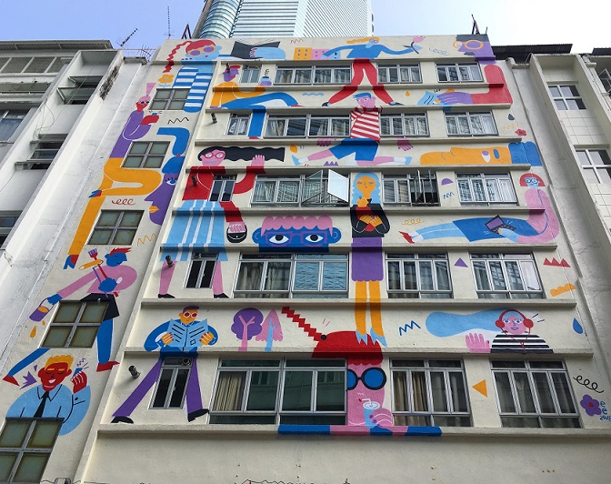 町の壁に描いたカラフルな人物画 / Emily Eldridge
