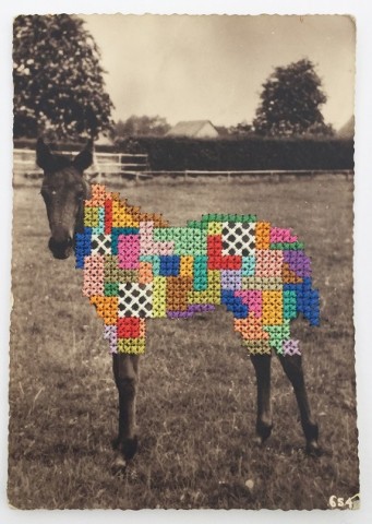 色とりどりの刺繍を加えた古いポストカード / Francesca Colussi Cramer
